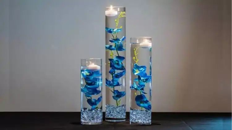 Clear tall glasses, flower vases, and jars can also join the party, cause, why not! They give a more modern and unique aspect to the floating candle decoration. But it has to be crystal clear, with no designs or patterns. Or it won’t be as beautiful as it should’ve been.